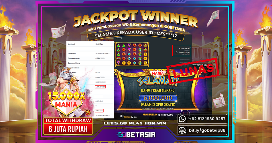 Dengan bukti pembayaran ini kami menyatakan bahwa GOBETASIA adalah bandar terpercaya 100% PASTI BAYAR. Dengan pembayaran ini kami berani menjamin bahwa setiap kemenangan yang anda dapatkan bermain di GOBETASIA akan dibayar secara lunas tanpa adanya embel-embel pemblokiran akun.