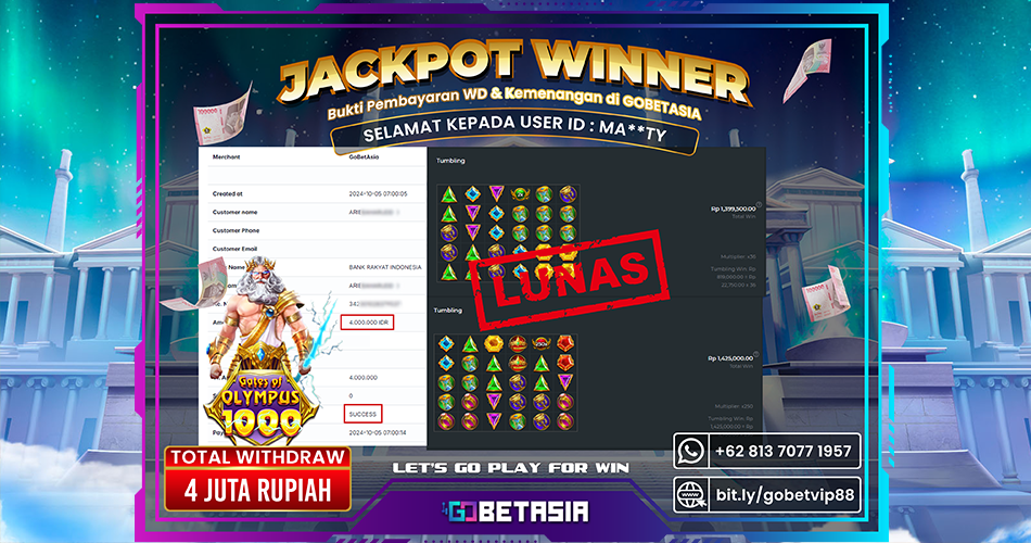 GOBETASIA hadir dengan bukti pembayaran nyata, sistem yang transparan, dan pelayanan profesional. Bukan hanya janji manis, tapi benar-benar membayar setiap kemenangan, termasuk JACKPOT besar, tanpa drama dan tanpa risiko akun diblokir.
