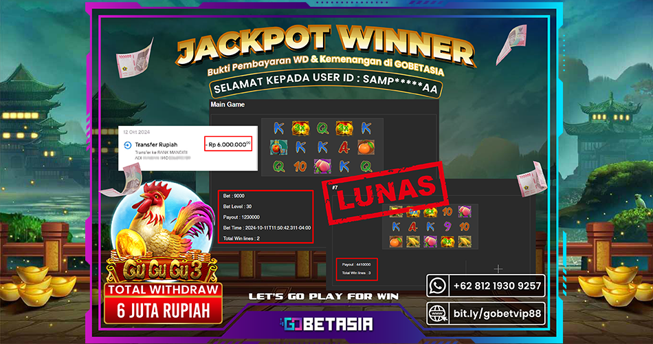Thank you for reading this post, don't forget to subscribe!Dengan bukti pembayaran ini kami menyatakan bahwa GOBETASIA adalah bandar terpercaya 100% PASTI BAYAR. Dengan pembayaran ini kami berani menjamin bahwa setiap kemenangan yang anda dapatkan bermain di GOBETASIA akan dibayar secara lunas tanpa adanya embel-embel pemblokiran akun.