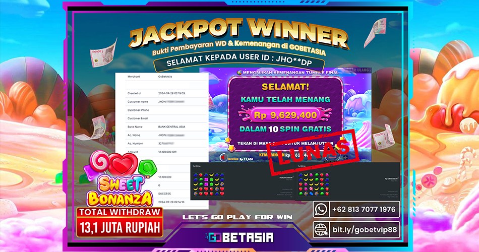 GOBETASIA hadir dengan bukti pembayaran nyata, sistem yang transparan, dan pelayanan profesional. Bukan hanya janji manis, tapi benar-benar membayar setiap kemenangan, termasuk JACKPOT besar, tanpa drama dan tanpa risiko akun diblokir.