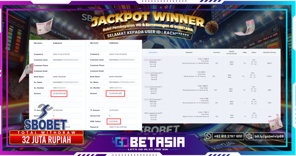Menang besar lagi ya boskuhhh RACH****** ! Semoga hoki makin lekat dan kesehatan ga pernah luntur.