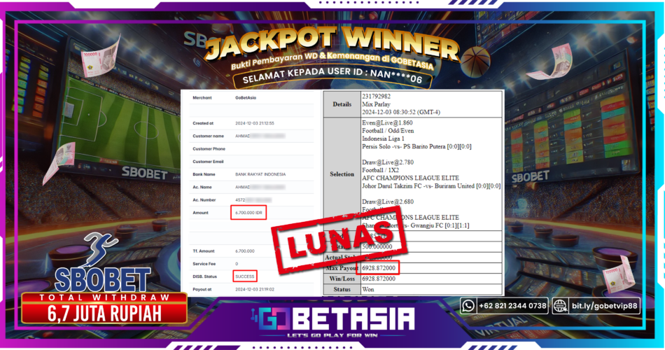Thank you for reading this post, don't forget to subscribe!Dengan bukti pembayaran ini kami menyatakan bahwa GOBETASIA adalah bandar terpercaya 100% PASTI BAYAR. Dengan pembayaran ini kami berani menjamin bahwa setiap kemenangan yang anda dapatkan bermain di GOBETASIA akan dibayar secara lunas tanpa adanya embel-embel pemblokiran akun.