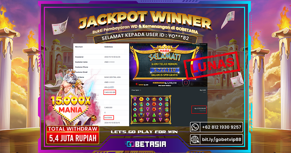 Thank you for reading this post, don't forget to subscribe!Dengan bukti pembayaran ini kami menyatakan bahwa GOBETASIA adalah bandar terpercaya 100% PASTI BAYAR. Dengan pembayaran ini kami berani menjamin bahwa setiap kemenangan yang anda dapatkan bermain di GOBETASIA akan dibayar secara lunas tanpa adanya embel-embel pemblokiran akun.