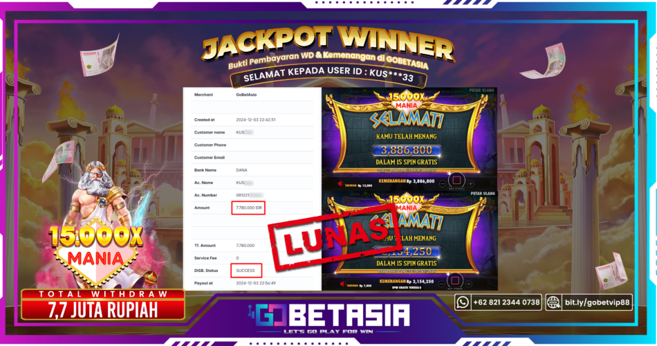 Jackpotnya bikin ngiler, congrats bosku ya Bosku KUS***33 ! Tetap sehat dan bahagia terus ya