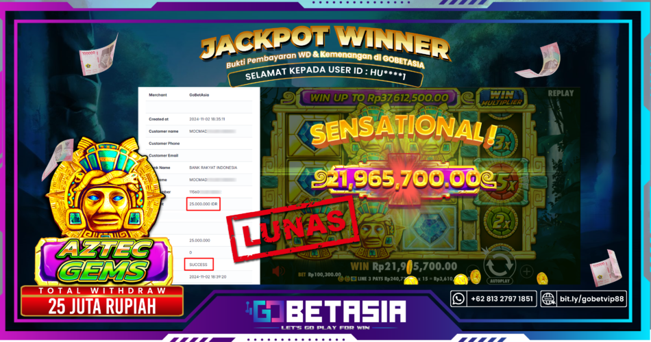Dengan bukti pembayaran ini kami menyatakan bahwa GOBETASIA adalah bandar terpercaya 100% PASTI BAYAR. Dengan pembayaran ini kami berani menjamin bahwa setiap kemenangan yang anda dapatkan bermain di GOBETASIA akan dibayar secara lunas tanpa adanya embel-embel pemblokiran akun.
