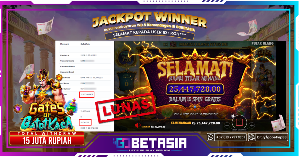Thank you for reading this post, don't forget to subscribe!Dengan bukti pembayaran ini kami menyatakan bahwa GOBETASIA adalah bandar terpercaya 100% PASTI BAYAR. Dengan pembayaran ini kami berani menjamin bahwa setiap kemenangan yang anda dapatkan bermain di GOBETASIA akan dibayar secara lunas tanpa adanya embel-embel pemblokiran akun.