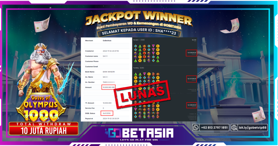 Dengan bukti pembayaran ini kami menyatakan bahwa GOBETASIA adalah bandar terpercaya 100% PASTI BAYAR. Dengan pembayaran ini kami berani menjamin bahwa setiap kemenangan yang anda dapatkan bermain di GOBETASIA akan dibayar secara lunas tanpa adanya embel-embel pemblokiran akun.