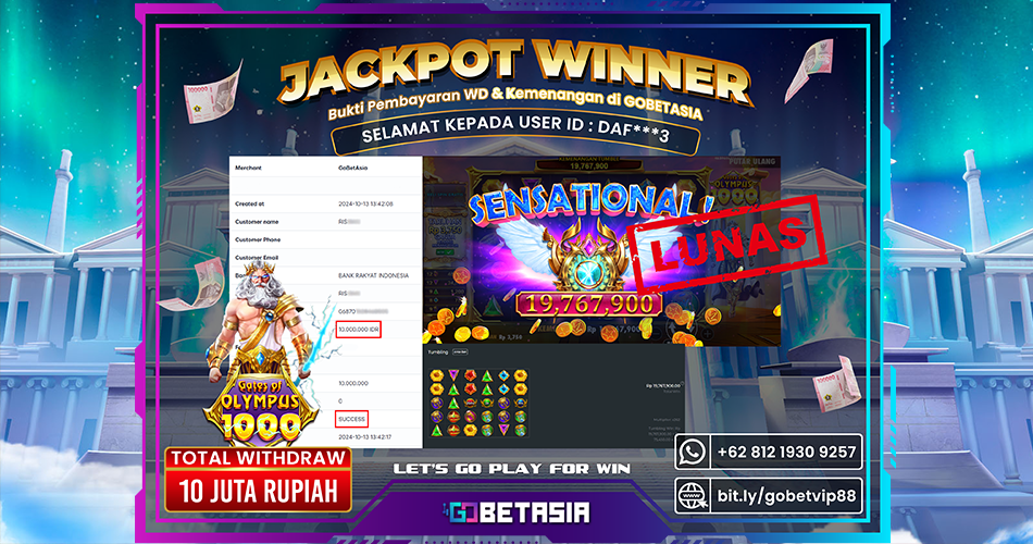 Thank you for reading this post, don't forget to subscribe!Dengan bukti pembayaran ini kami menyatakan bahwa GOBETASIA adalah bandar terpercaya 100% PASTI BAYAR. Dengan pembayaran ini kami berani menjamin bahwa setiap kemenangan yang anda dapatkan bermain di GOBETASIA akan dibayar secara lunas tanpa adanya embel-embel pemblokiran akun.