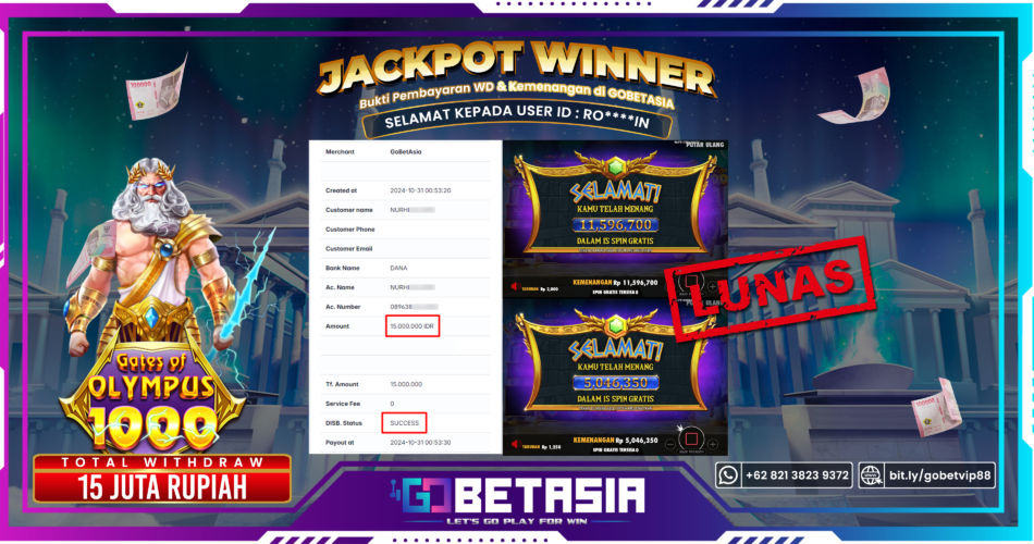 Thank you for reading this post, don't forget to subscribe!Dengan bukti pembayaran ini kami menyatakan bahwa GOBETASIA adalah bandar terpercaya 100% PASTI BAYAR. Dengan pembayaran ini kami berani menjamin bahwa setiap kemenangan yang anda dapatkan bermain di GOBETASIA akan dibayar secara lunas tanpa adanya embel-embel pemblokiran akun.