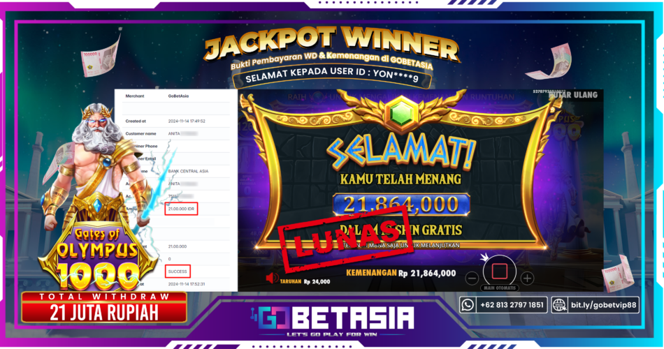 Thank you for reading this post, don't forget to subscribe!Dengan bukti pembayaran ini kami menyatakan bahwa GOBETASIA adalah bandar terpercaya 100% PASTI BAYAR. Dengan pembayaran ini kami berani menjamin bahwa setiap kemenangan yang anda dapatkan bermain di GOBETASIA akan dibayar secara lunas tanpa adanya embel-embel pemblokiran akun.