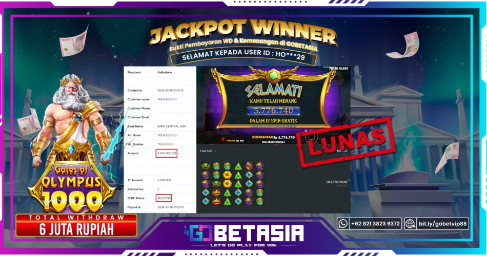 Dengan bukti pembayaran ini kami menyatakan bahwa GOBETASIA adalah bandar terpercaya 100% PASTI BAYAR. Dengan pembayaran ini kami berani menjamin bahwa setiap kemenangan yang anda dapatkan bermain di GOBETASIA akan dibayar secara lunas tanpa adanya embel-embel pemblokiran akun.