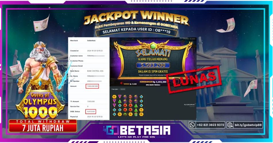 Dengan bukti pembayaran ini kami menyatakan bahwa GOBETASIA adalah bandar terpercaya 100% PASTI BAYAR. Dengan pembayaran ini kami berani menjamin bahwa setiap kemenangan yang anda dapatkan bermain di GOBETASIA akan dibayar secara lunas tanpa adanya embel-embel pemblokiran akun.