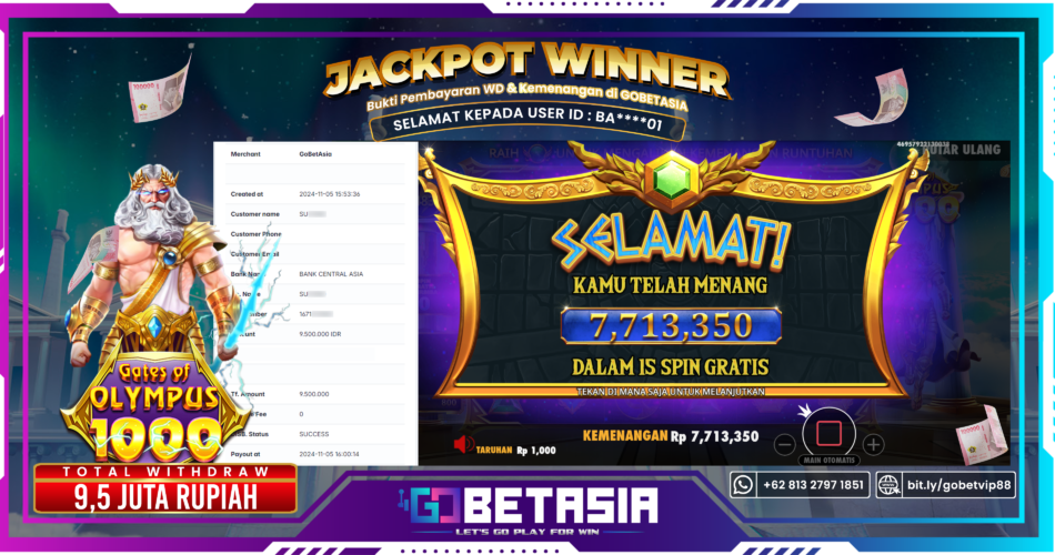 Dengan bukti pembayaran ini kami menyatakan bahwa GOBETASIA adalah bandar terpercaya 100% PASTI BAYAR. Dengan pembayaran ini kami berani menjamin bahwa setiap kemenangan yang anda dapatkan bermain di GOBETASIA akan dibayar secara lunas tanpa adanya embel-embel pemblokiran akun.
