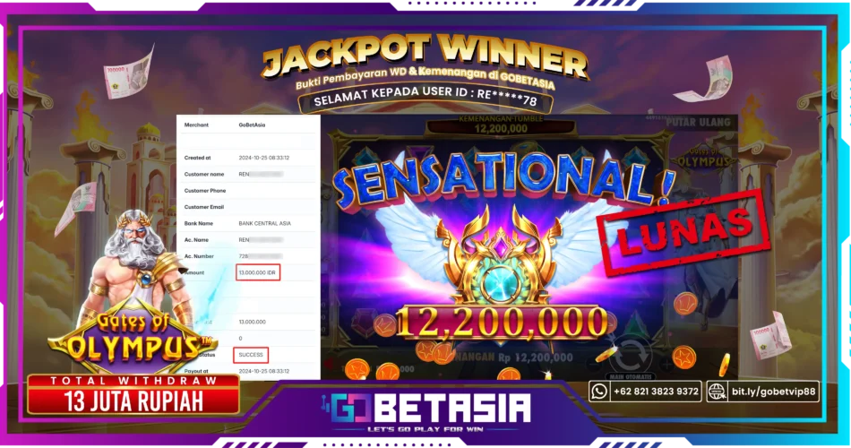 Dengan bukti pembayaran ini kami menyatakan bahwa GOBETASIA adalah bandar terpercaya 100% PASTI BAYAR. Dengan pembayaran ini kami berani menjamin bahwa setiap kemenangan yang anda dapatkan bermain di GOBETASIA akan dibayar secara lunas tanpa adanya embel-embel pemblokiran akun.
