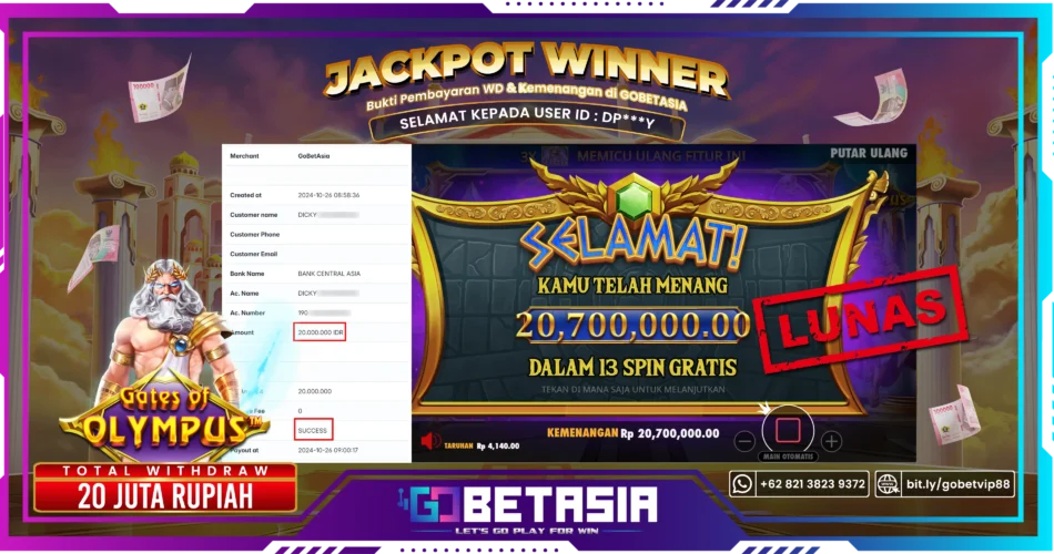 Thank you for reading this post, don't forget to subscribe!Dengan bukti pembayaran ini kami menyatakan bahwa GOBETASIA adalah bandar terpercaya 100% PASTI BAYAR. Dengan pembayaran ini kami berani menjamin bahwa setiap kemenangan yang anda dapatkan bermain di GOBETASIA akan dibayar secara lunas tanpa adanya embel-embel pemblokiran akun.