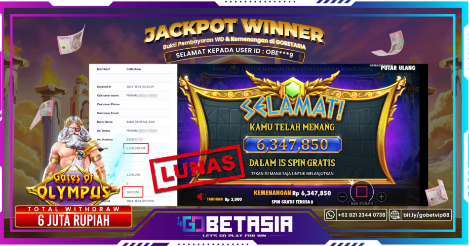 Thank you for reading this post, don't forget to subscribe!Dengan bukti pembayaran ini kami menyatakan bahwa GOBETASIA adalah bandar terpercaya 100% PASTI BAYAR. Dengan pembayaran ini kami berani menjamin bahwa setiap kemenangan yang anda dapatkan bermain di GOBETASIA akan dibayar secara lunas tanpa adanya embel-embel pemblokiran akun.