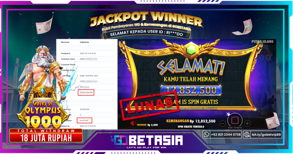 Dengan bukti pembayaran ini kami menyatakan bahwa GOBETASIA adalah bandar terpercaya 100% PASTI BAYAR. Dengan pembayaran ini kami berani menjamin bahwa setiap kemenangan yang anda dapatkan bermain di GOBETASIA akan dibayar secara lunas tanpa adanya embel-embel pemblokiran akun.