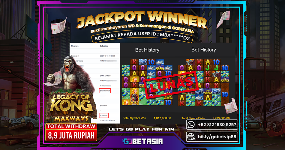 Beudeeuuhhhhh ! Baksit nih Boskuhhh MBA***G2 dapet JEPE dari kingkong ngamuk cuyyyy gak main main 8.999.999 masuk rekening. Boleh kali ajarin mainnya ke yang lain biar JEPE bareng yakan. Sehat trosss ya boskuhh !