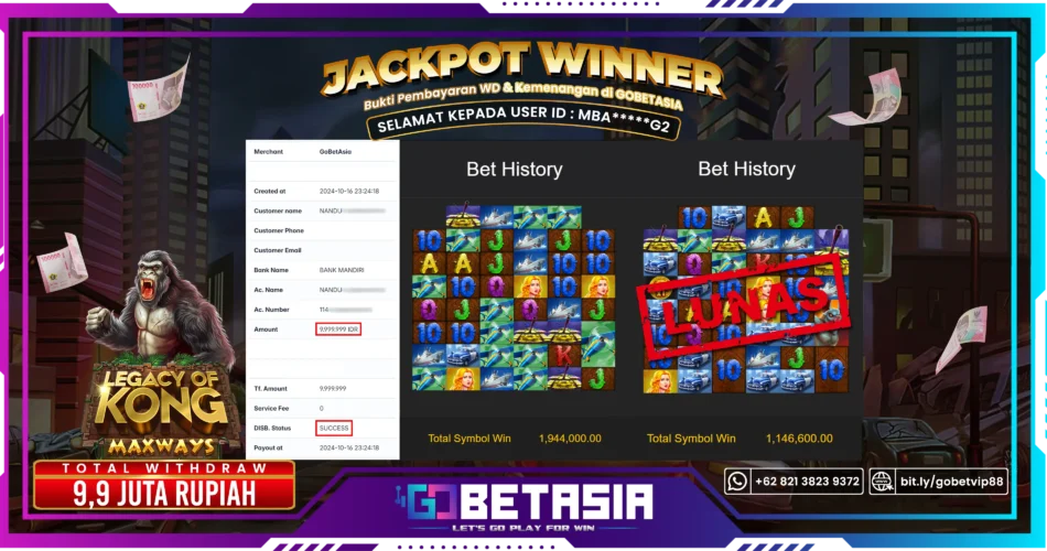 Dengan bukti pembayaran ini kami menyatakan bahwa GOBETASIA adalah bandar terpercaya 100% PASTI BAYAR. Dengan pembayaran ini kami berani menjamin bahwa setiap kemenangan yang anda dapatkan bermain di GOBETASIA akan dibayar secara lunas tanpa adanya embel-embel pemblokiran akun.