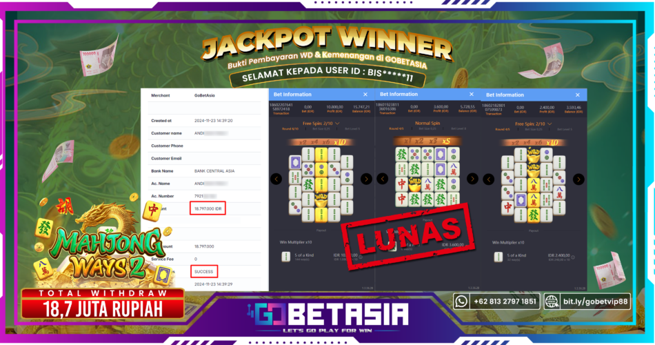 Thank you for reading this post, don't forget to subscribe!Dengan bukti pembayaran ini kami menyatakan bahwa GOBETASIA adalah bandar terpercaya 100% PASTI BAYAR. Dengan pembayaran ini kami berani menjamin bahwa setiap kemenangan yang anda dapatkan bermain di GOBETASIA akan dibayar secara lunas tanpa adanya embel-embel pemblokiran akun.