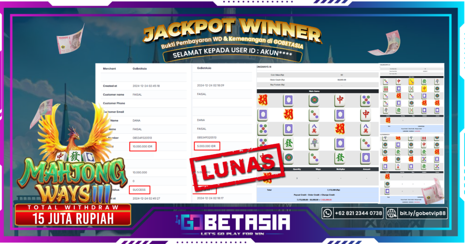Dengan bukti pembayaran ini, kami dengan tegas menyatakan bahwa GOBETASIA adalah bandar terpercaya 100% PASTI BAYAR. Selain itu, dengan pembayaran ini kami juga berani menjamin bahwa setiap kemenangan yang Anda raih saat bermain di GOBETASIA akan dibayar secara lunas tanpa adanya embel-embel pemblokiran akun.Dengan kata lain, kami memastikan Anda dapat menikmati kemenangan tanpa halangan apapun.