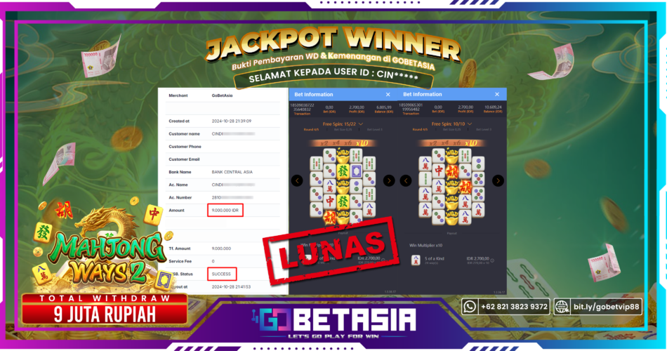 Mayan tipis tipis dapat JEPE 9.000.000 dari mahjong yah Bosku CIN***. Cakep banget dah sama kek orangnya cakep juga. sehat selalu yah boskuhhh