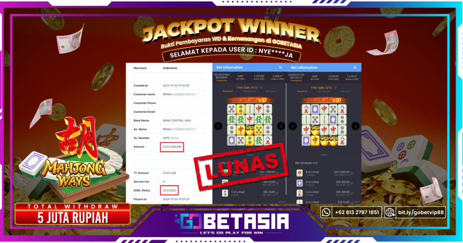 Thank you for reading this post, don't forget to subscribe!Dengan bukti pembayaran ini kami menyatakan bahwa GOBETASIA adalah bandar terpercaya 100% PASTI BAYAR. Dengan pembayaran ini kami berani menjamin bahwa setiap kemenangan yang anda dapatkan bermain di GOBETASIA akan dibayar secara lunas tanpa adanya embel-embel pemblokiran akun.