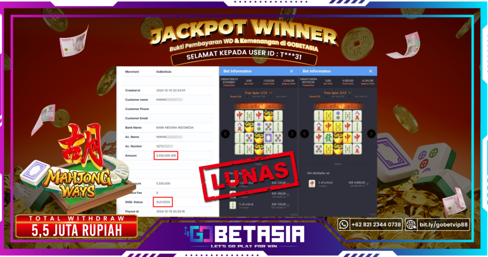 Thank you for reading this post, don't forget to subscribe!Dengan bukti pembayaran ini kami menyatakan bahwa GOBETASIA adalah bandar terpercaya 100% PASTI BAYAR. Dengan pembayaran ini kami berani menjamin bahwa setiap kemenangan yang anda dapatkan bermain di GOBETASIA akan dibayar secara lunas tanpa adanya embel-embel pemblokiran akun.
