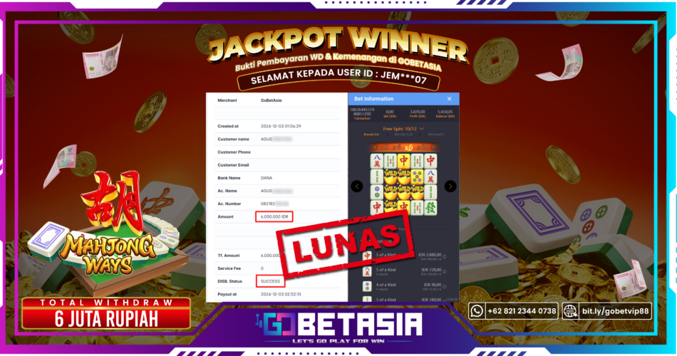 Thank you for reading this post, don't forget to subscribe!Dengan bukti pembayaran ini kami menyatakan bahwa GOBETASIA adalah bandar terpercaya 100% PASTI BAYAR. Dengan pembayaran ini kami berani menjamin bahwa setiap kemenangan yang anda dapatkan bermain di GOBETASIA akan dibayar secara lunas tanpa adanya embel-embel pemblokiran akun.