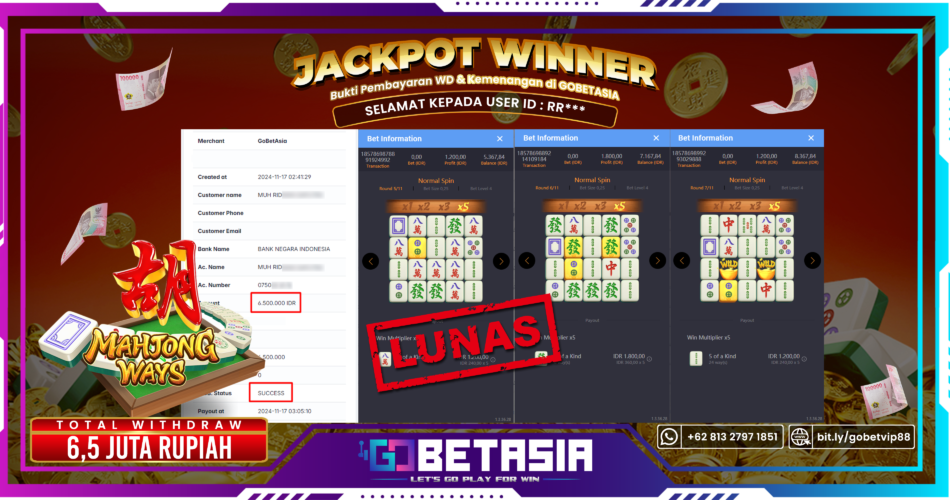 Thank you for reading this post, don't forget to subscribe!Dengan bukti pembayaran ini kami menyatakan bahwa GOBETASIA adalah bandar terpercaya 100% PASTI BAYAR. Dengan pembayaran ini kami berani menjamin bahwa setiap kemenangan yang anda dapatkan bermain di GOBETASIA akan dibayar secara lunas tanpa adanya embel-embel pemblokiran akun.