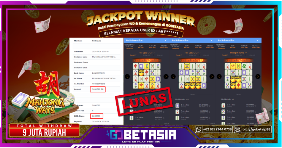 Thank you for reading this post, don't forget to subscribe!Dengan bukti pembayaran ini kami menyatakan bahwa GOBETASIA adalah bandar terpercaya 100% PASTI BAYAR. Dengan pembayaran ini kami berani menjamin bahwa setiap kemenangan yang anda dapatkan bermain di GOBETASIA akan dibayar secara lunas tanpa adanya embel-embel pemblokiran akun.