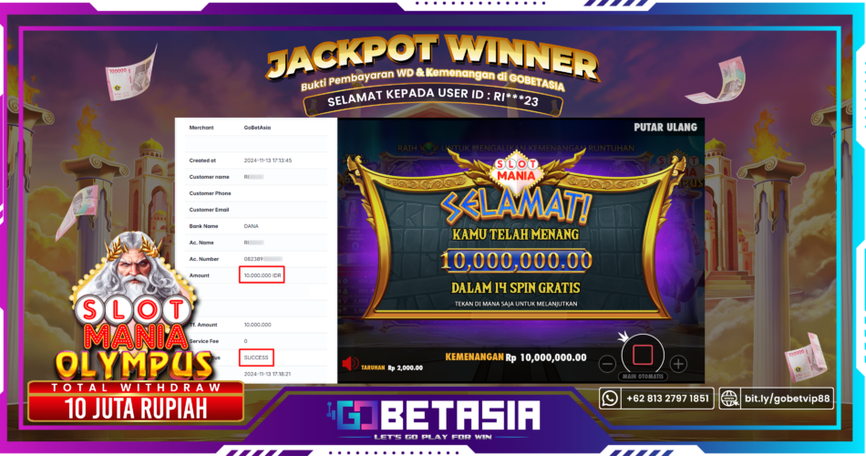 Wuih, pecah Jackpot nih Bosku RI***23 ! Lumayan uang kaget yah bosku. semoga selalu sehat dan hoki makin nempel