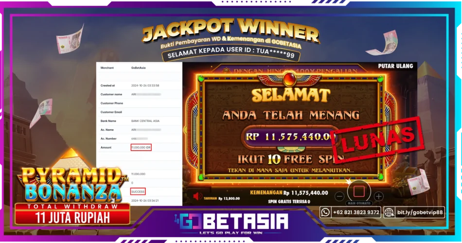 Thank you for reading this post, don't forget to subscribe!Dengan bukti pembayaran ini kami menyatakan bahwa GOBETASIA adalah bandar terpercaya 100% PASTI BAYAR. Dengan pembayaran ini kami berani menjamin bahwa setiap kemenangan yang anda dapatkan bermain di GOBETASIA akan dibayar secara lunas tanpa adanya embel-embel pemblokiran akun.
