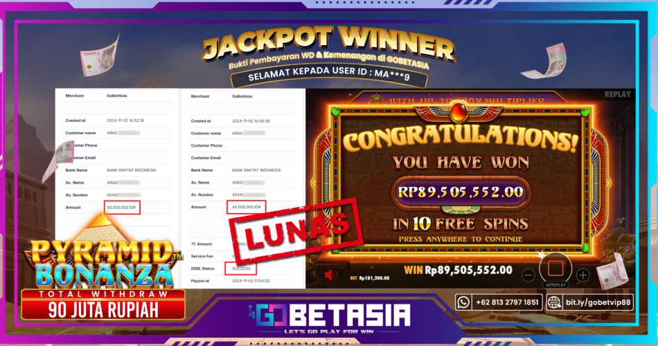 Thank you for reading this post, don't forget to subscribe!Dengan bukti pembayaran ini kami menyatakan bahwa GOBETASIA adalah bandar terpercaya 100% PASTI BAYAR. Dengan pembayaran ini kami berani menjamin bahwa setiap kemenangan yang anda dapatkan bermain di GOBETASIA akan dibayar secara lunas tanpa adanya embel-embel pemblokiran akun.