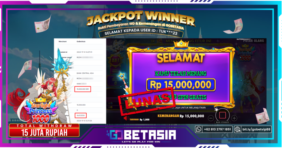 Thank you for reading this post, don't forget to subscribe!Dengan bukti pembayaran ini kami menyatakan bahwa GOBETASIA adalah bandar terpercaya 100% PASTI BAYAR. Dengan pembayaran ini kami berani menjamin bahwa setiap kemenangan yang anda dapatkan bermain di GOBETASIA akan dibayar secara lunas tanpa adanya embel-embel pemblokiran akun.