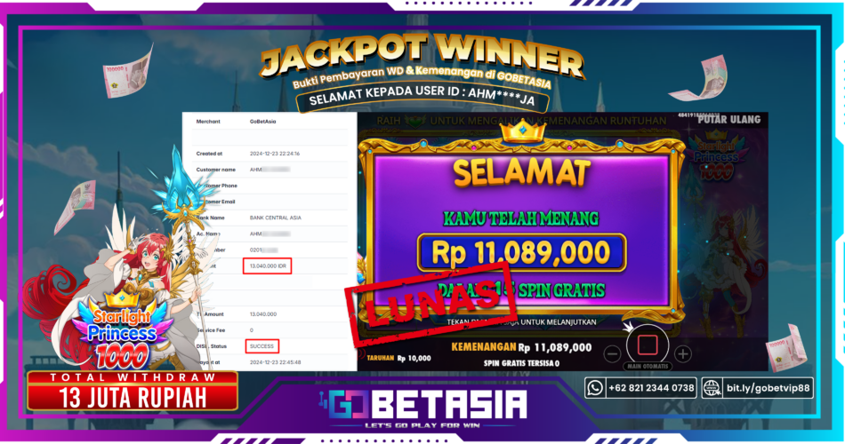 Thank you for reading this post, don't forget to subscribe!Dengan bukti pembayaran ini, kami dengan tegas menyatakan bahwa GOBETASIA adalah bandar terpercaya 100% PASTI BAYAR. Selain itu, dengan pembayaran ini kami juga berani menjamin bahwa setiap kemenangan yang Anda raih saat bermain di GOBETASIA akan dibayar secara lunas tanpa adanya embel-embel pemblokiran akun.Dengan kata lain, kami memastikan Anda dapat menikmati kemenangan tanpa halangan apapun.