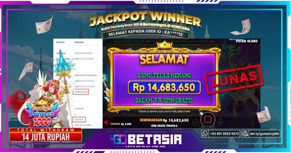 Dengan bukti pembayaran ini kami menyatakan bahwa GOBETASIA adalah bandar terpercaya 100% PASTI BAYAR. Dengan pembayaran ini kami berani menjamin bahwa setiap kemenangan yang anda dapatkan bermain di GOBETASIA akan dibayar secara lunas tanpa adanya embel-embel pemblokiran akun.