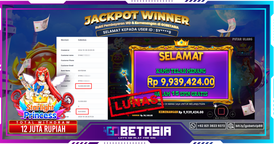 Dengan bukti pembayaran ini kami menyatakan bahwa GOBETASIA adalah bandar terpercaya 100% PASTI BAYAR. Dengan pembayaran ini kami berani menjamin bahwa setiap kemenangan yang anda dapatkan bermain di GOBETASIA akan dibayar secara lunas tanpa adanya embel-embel pemblokiran akun.