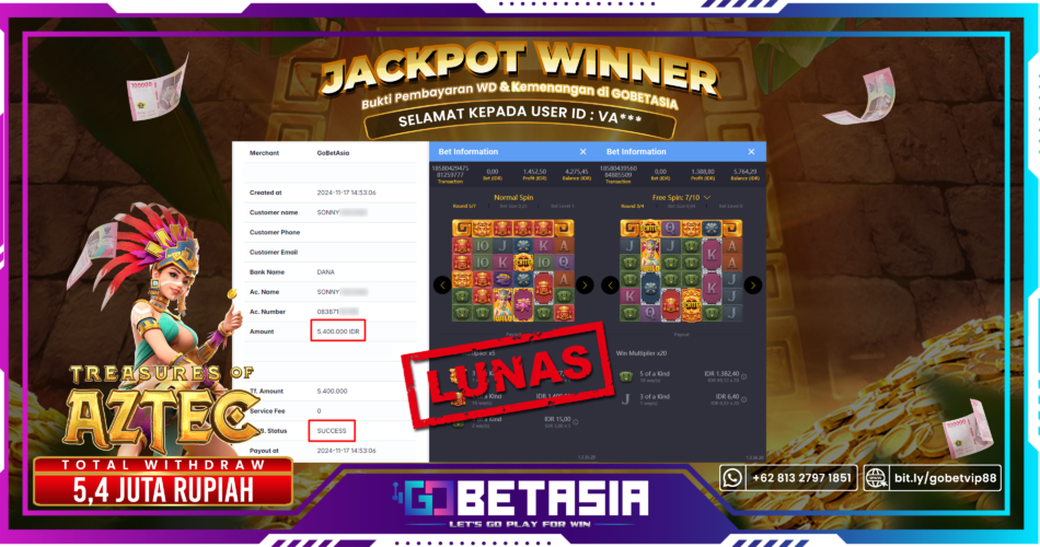 Dengan bukti pembayaran ini kami menyatakan bahwa GOBETASIA adalah bandar terpercaya 100% PASTI BAYAR. Dengan pembayaran ini kami berani menjamin bahwa setiap kemenangan yang anda dapatkan bermain di GOBETASIA akan dibayar secara lunas tanpa adanya embel-embel pemblokiran akun.