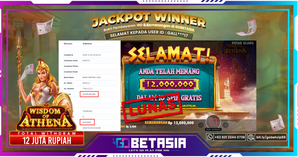 Dengan bukti pembayaran ini kami menyatakan bahwa GOBETASIA adalah bandar terpercaya 100% PASTI BAYAR. Dengan pembayaran ini kami berani menjamin bahwa setiap kemenangan yang anda dapatkan bermain di GOBETASIA akan dibayar secara lunas tanpa adanya embel-embel pemblokiran akun.