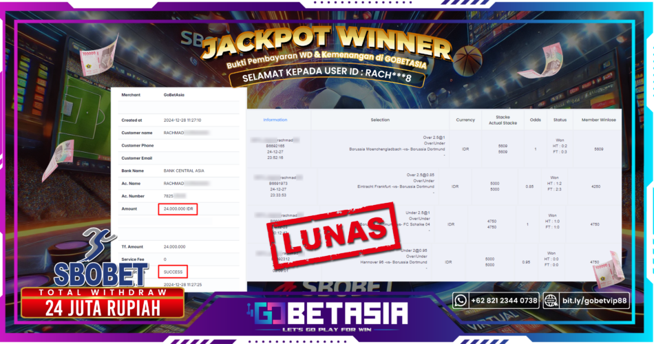 Thank you for reading this post, don't forget to subscribe!Dengan bukti pembayaran ini, kami dengan tegas menyatakan bahwa GOBETASIA adalah bandar terpercaya 100% PASTI BAYAR. Selain itu, dengan pembayaran ini kami juga berani menjamin bahwa setiap kemenangan yang Anda raih saat bermain di GOBETASIA akan dibayar secara lunas tanpa adanya embel-embel pemblokiran akun.Dengan kata lain, kami memastikan Anda dapat menikmati kemenangan tanpa halangan apapun.