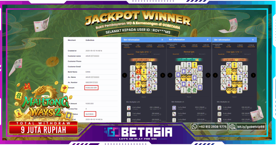 GOBETASIA hadir dengan bukti pembayaran yang jelas dan transparan. Kami bukan hanya janji-janji, tetapi benar-benar membayar setiap kemenangan, termasuk JACKPOT besar, tanpa drama dan tanpa risiko akun diblokir.