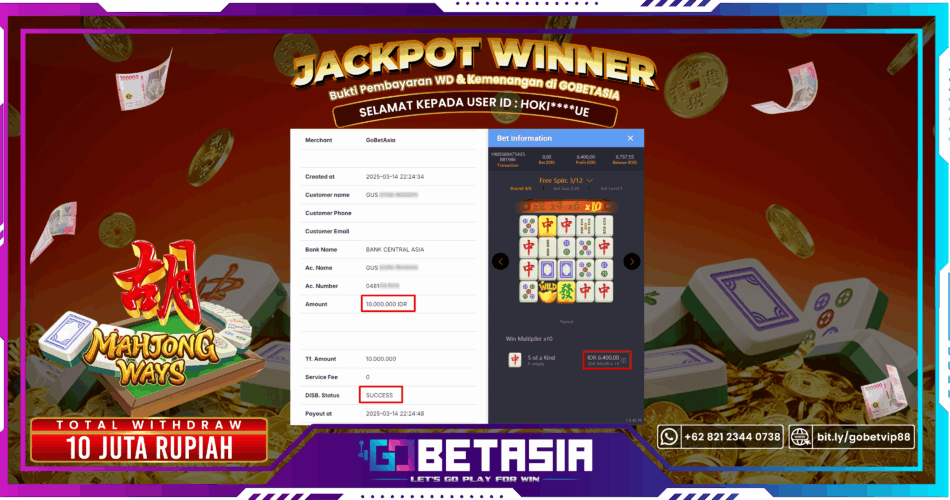 Dengan bukti pembayaran ini, kami dengan tegas menyatakan bahwa GOBETASIA adalah bandar terpercaya 100% PASTI BAYAR. Selain itu, dengan pembayaran ini, kami juga berani menjamin bahwa setiap kemenangan yang Anda raih saat bermain di GOBETASIA akan dibayar secara lunas tanpa adanya embel-embel pemblokiran akun.