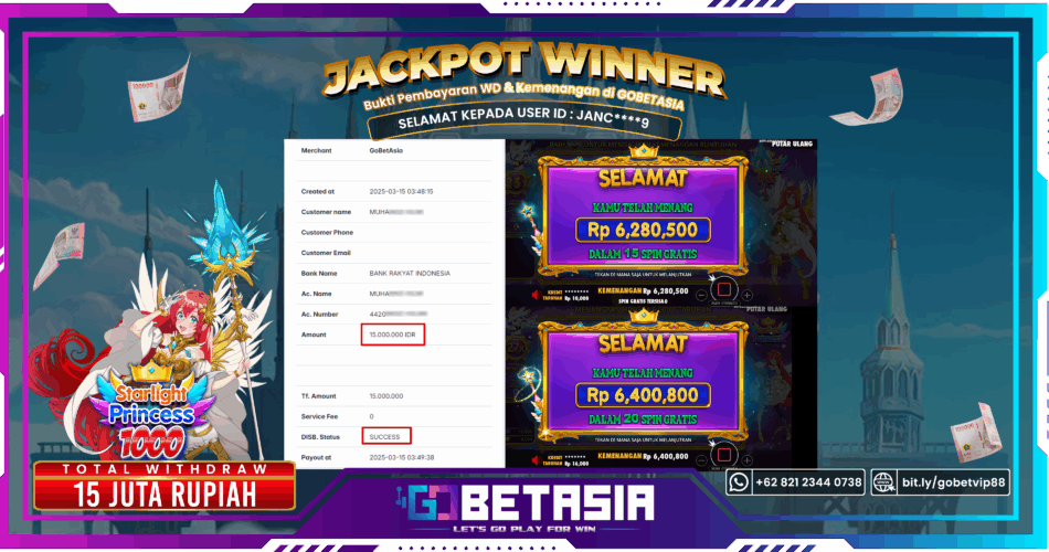 Dengan bukti pembayaran ini, kami dengan tegas menyatakan bahwa GOBETASIA adalah bandar terpercaya 100% PASTI BAYAR. Selain itu, dengan pembayaran ini kami juga berani menjamin bahwa setiap kemenangan yang Anda raih saat bermain di GOBETASIA akan dibayar secara lunas tanpa adanya embel-embel pemblokiran akun.