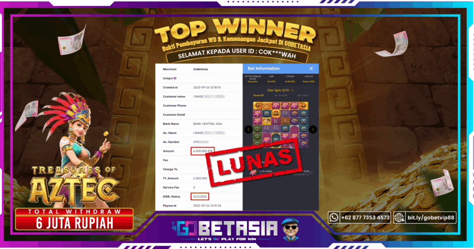GOBETASIA hadir dengan bukti pembayaran nyata, sistem yang transparan, dan pelayanan profesional. Bukan hanya janji manis, tapi benar-benar membayar setiap kemenangan, termasuk JACKPOT besar, tanpa drama dan tanpa risiko akun diblokir.
